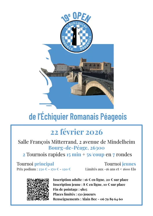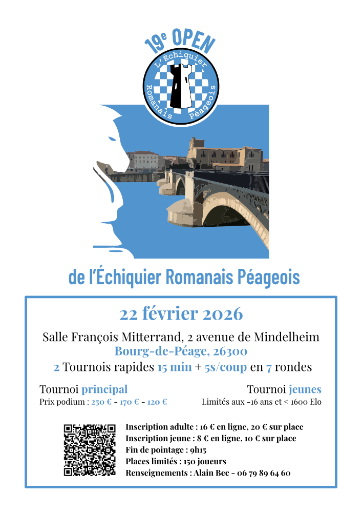 Nous sommes ravis de vous convier à notre 19e Open d’échecs, un événement organisé avec passion par L’Échiquier Romanais Péageois.